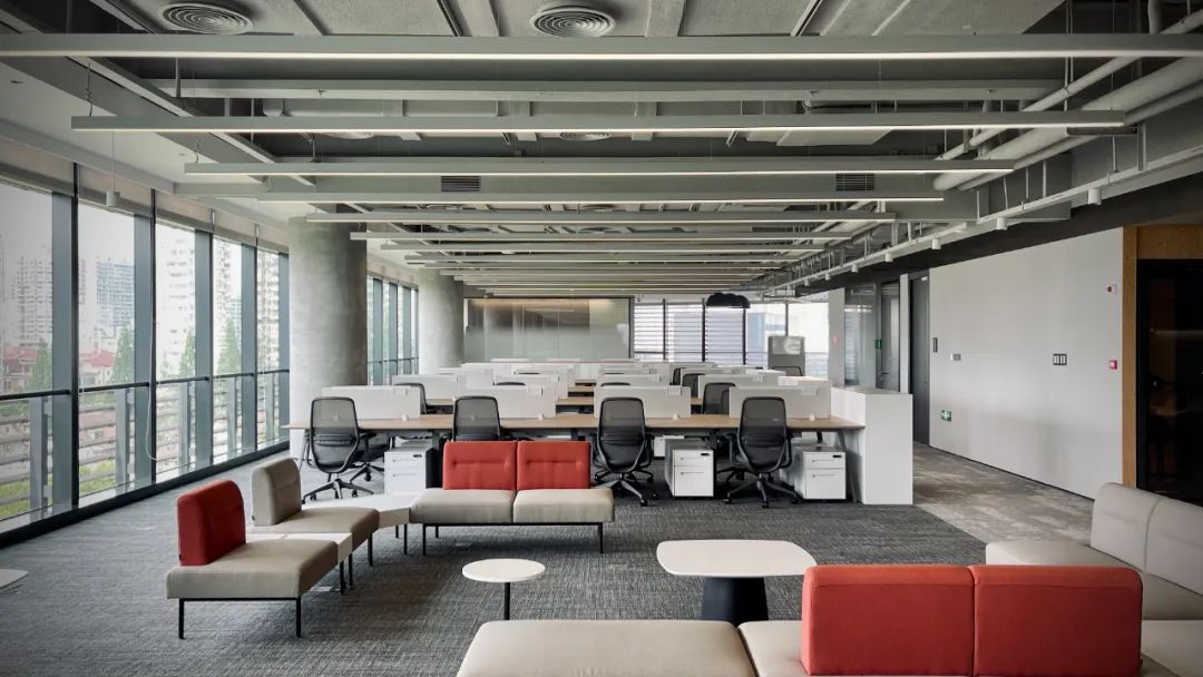 建議用加工地板取代稀釋混凝土、輕質混凝土進行回填,減輕樓板承重,方便改動;反復研討技術多次實驗,采用雙層龍骨夾石膏板、兩側再鋪巖棉,雙層隔音超白玻隔斷,隔音板到天花頂不留一點縫隙等措施,隔音降噪效果遠超行業(yè)標準;優(yōu)化供應商,精選品質燈具,從外觀、照度、舒適度三個維度深化設計,使整個辦公樓呈現統一柔和照明效果。